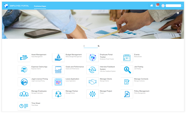 Mokxa Technologies, LLC based in Columbia, MD, faced a unique challenge of marrying its agile and “start-up” mindset with the need to streamline all of its enterprise processes to manage its phenomenal growth. With limited resources of a smaller company, diverse, mobile and global consulting workforce, Mokxa needed to build enterprise capabilities incrementally, module-by-module. Keeping in mind the various logical entities and applications that needed to be built, such a modular design is needed to ensure data and functional integrity, even as the developers around the world built the capabilities incrementally and independently. The composable business architecture offered by Joget was a perfect choice for Mokxa.