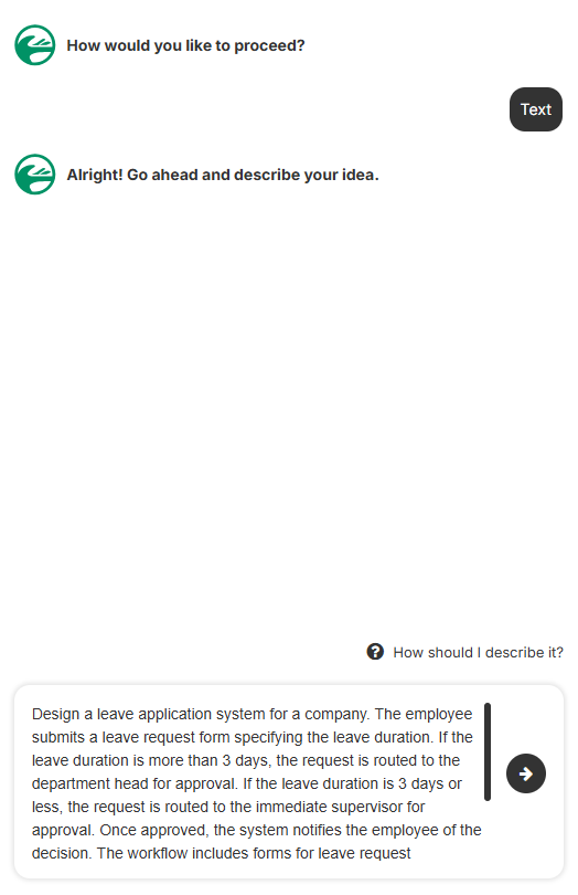An AI chatbot that allows users to create and edit applications effortlessly using natural language and images.