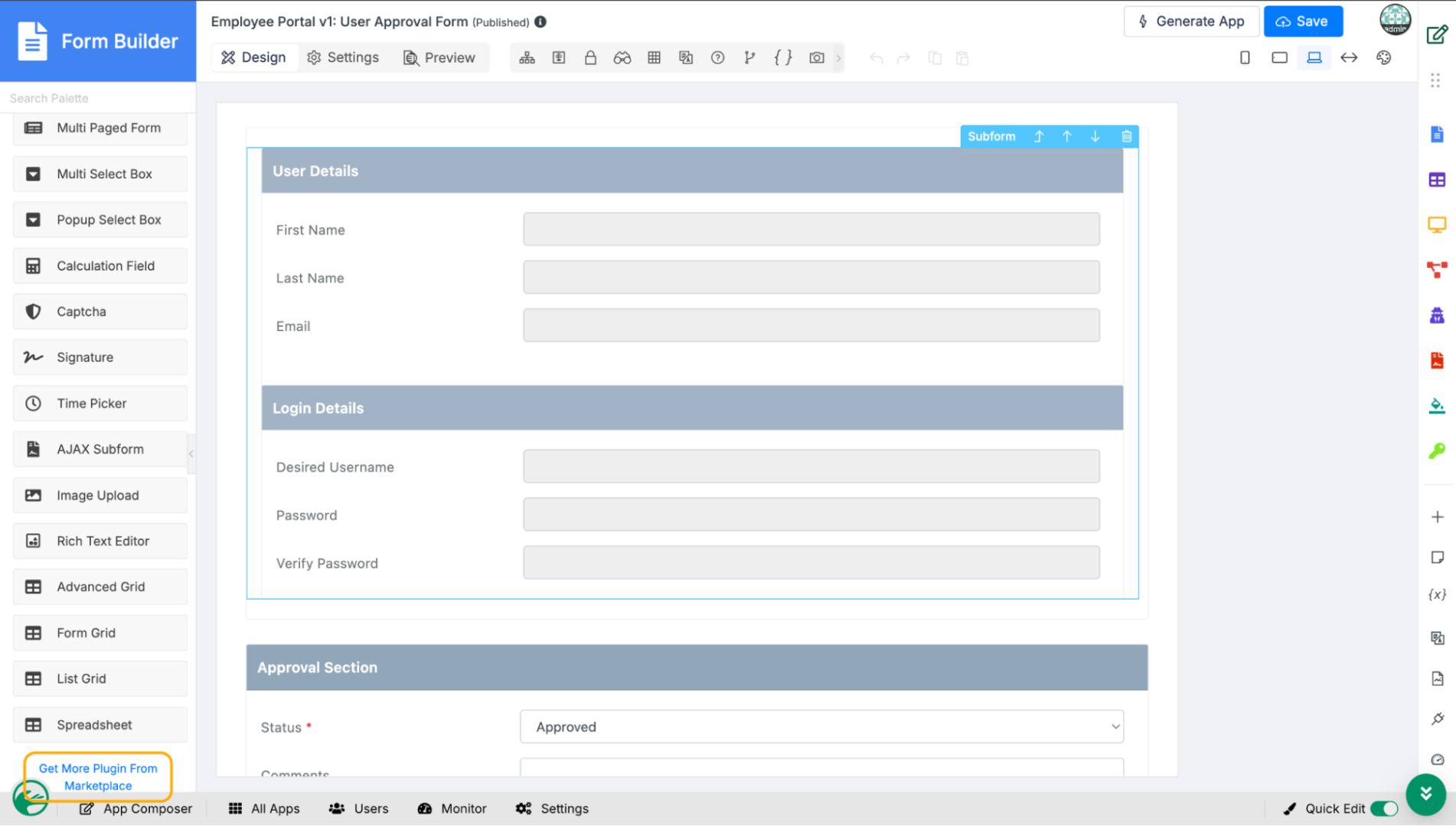 Directly integrates with the Joget Marketplace, enabling users to discover, install, and manage plugins effortlessly from within the platform.