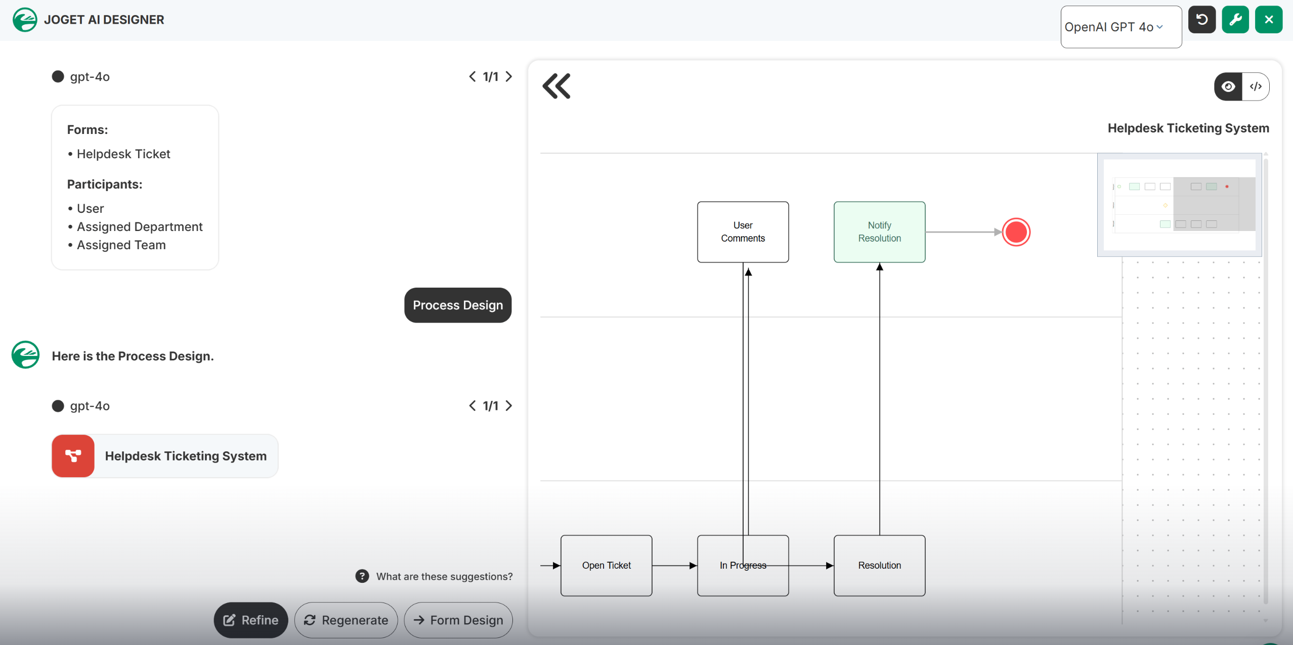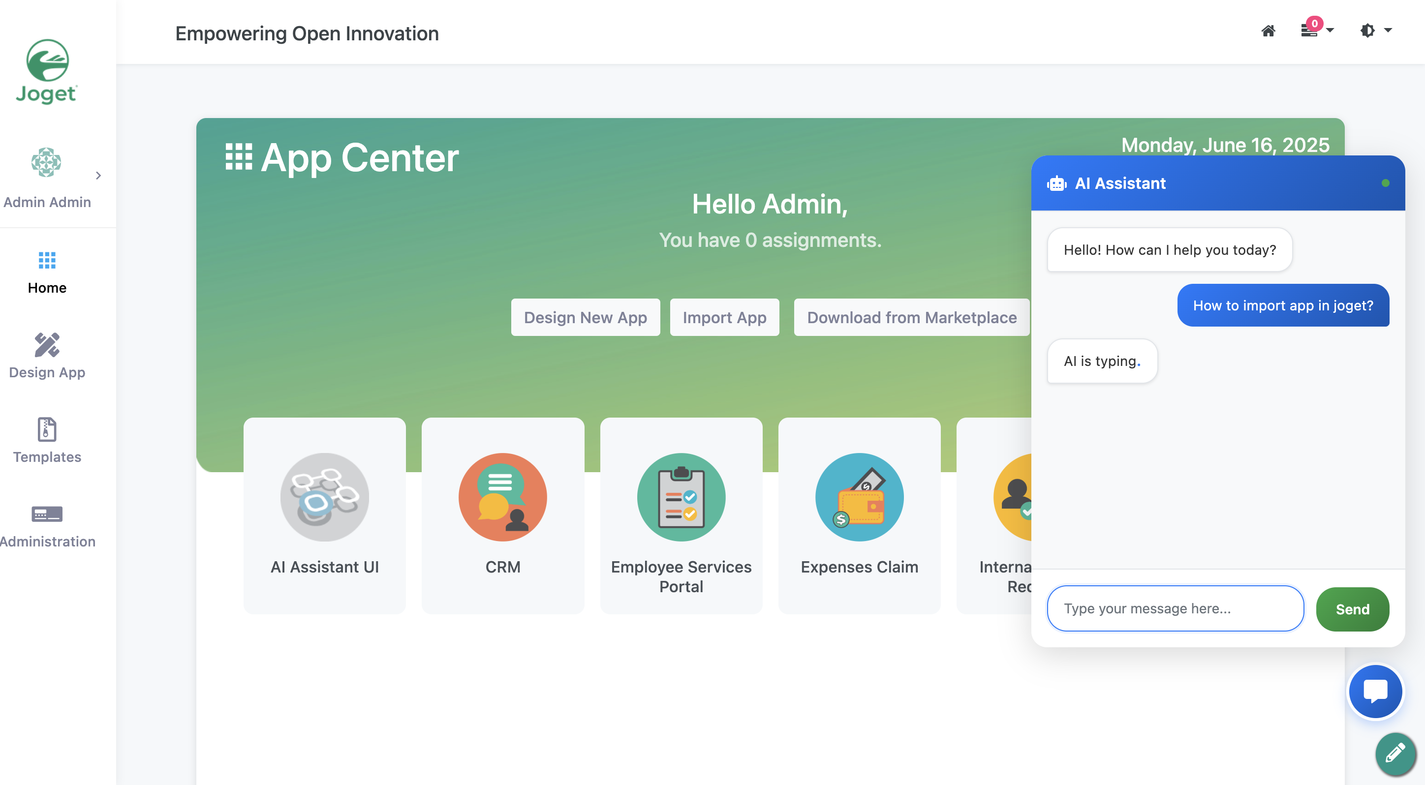 Joget Intelligence is the new umbrella brand for the artificial intelligence (AI) capabilities introduced in DX 9. It represents our commitment to enhancing both human and artificial intelligence to create a seamless, intelligent application development experience.