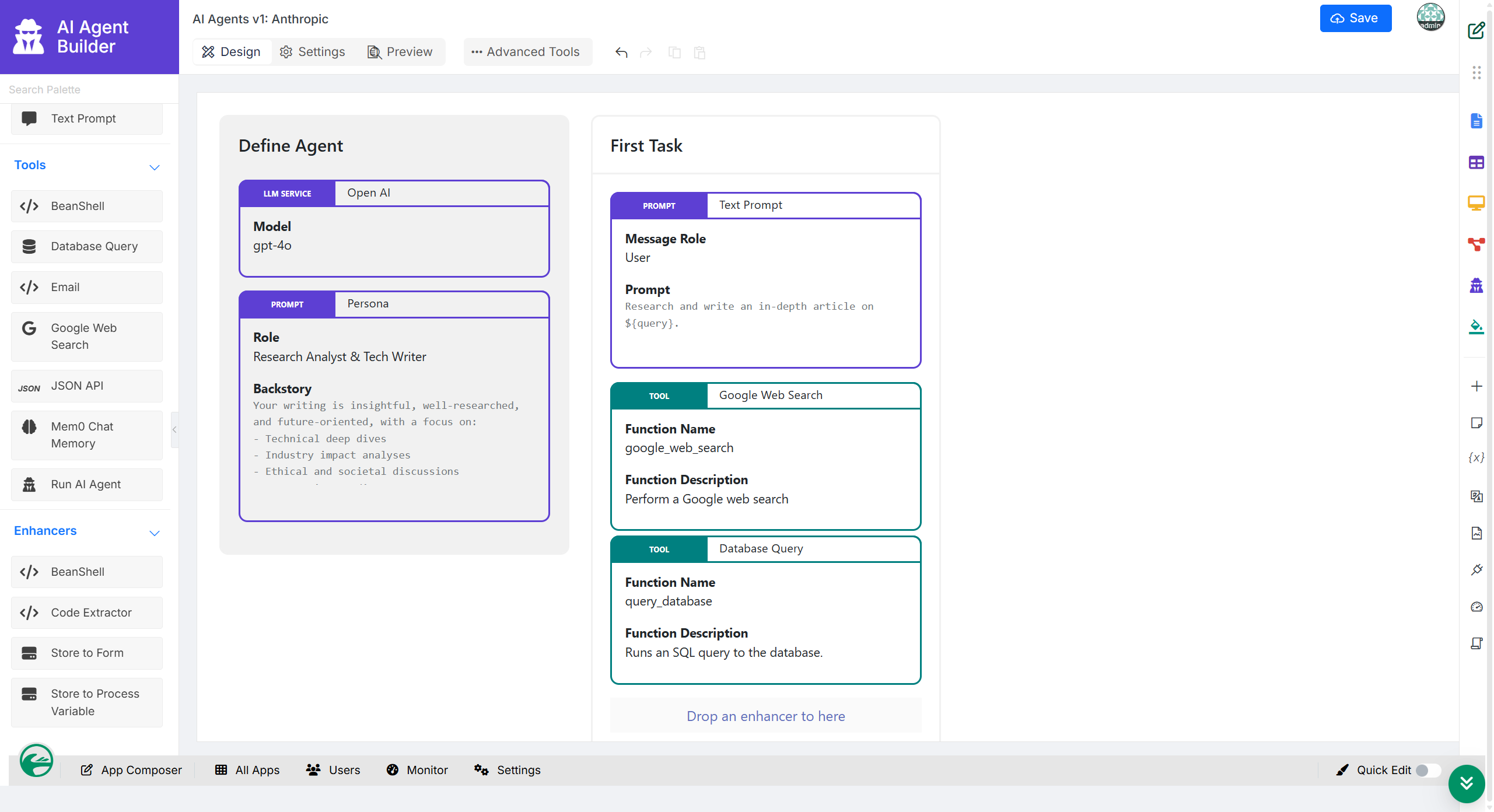 Autonomous Agentic AI agents that can be orchestrated within process workflows to interact with applications and automate tasks.