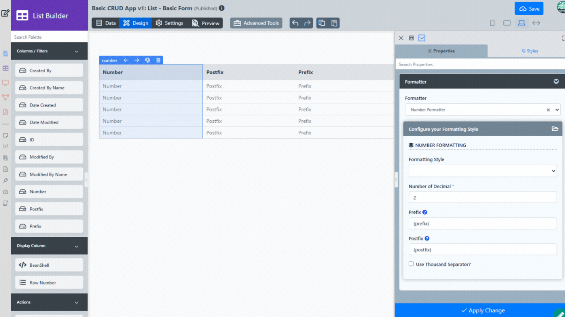 This plugin enhances your data lists by automatically modifying their appearance in real time based on certain conditions. For instance, if a ‘status’ field is set to “Approved,” the plugin activates a specific formatter. This adds a dynamic and responsive element to your data lists.